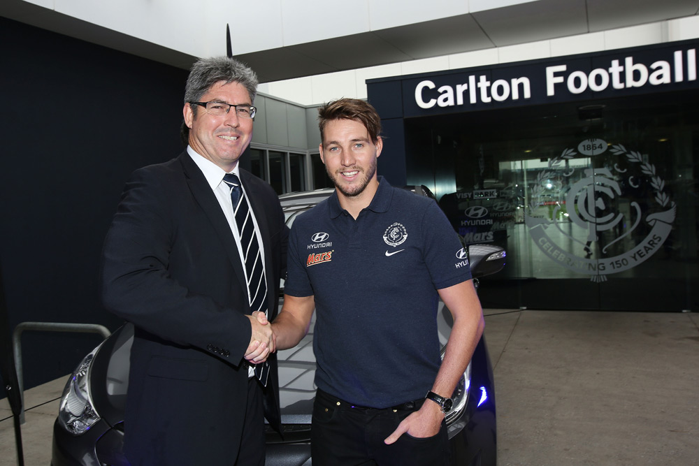 13 November, 2013 – Hyundai Motor Company Australia has announced the extension of its major sponsorship of the Carlton Football Club for a further four years. It means Hyundai will remain Carlton’s Joint Major Partner, and the official vehicle supplier of the team, until the end of the 2017 AFL Premiership season.