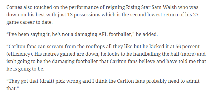 It has been reported adnauseum in the media Carlton doesn't have a Turnover Game and along with these Fade outs IMO is a result of not having good runners in the forward line. Thi sis required to create overlap, leads and to take on midfield minutes to keep the intensity up in the coal face.