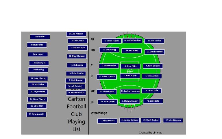 .. ....yeah i'm inclined to stay with what i have, and see how things are looking towards end of pre-season training.. ..Lucas or Davies might come on quicker, both seem like they could be AFL ready.. .... ..and i'm hoping Knockers is right to go, and is able to be our primo Ruck, otherwise Krooz would go back into the ruck i guess.. ..would assume that Lucas will break into the team in the not too distant future..